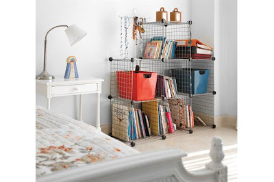 Un mueble traído de un viaje al extranjero, formado por varios cubos de aluminio, es la práctica solución para un cuarto infantil. Es de fácil armado, versátil y también fácil de desmantelar llegado el momento, ya que a medida que los chicos crecen, cambian las necesidades y, entre ellas, también varían las de guardado, el tipo de juegos y objetos y su cantidad. Con trama de aluminio como fino enrejado, estos nichos son menos estructurados y más livianos a la vista que una biblioteca de madera. En ellos se guarda de todo y lucen muy prolijos: carpetas escolares, cajitas con accesorios y los más variados juegos.